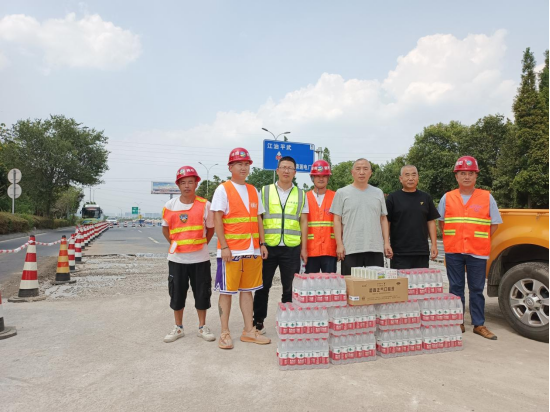 在武家坡施工現(xiàn)場,岳永林一行對施工人員進行了送清涼慰問。(辦公室)