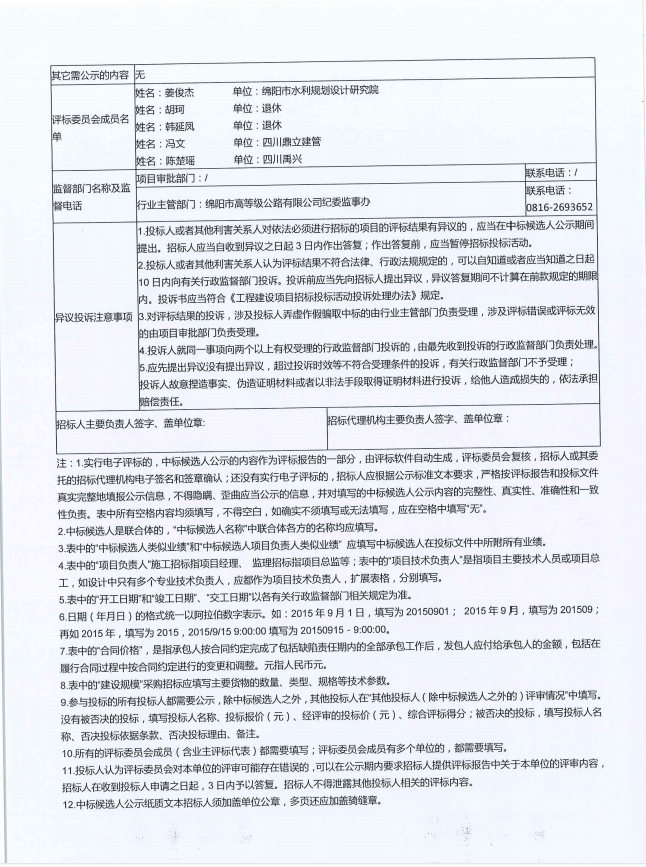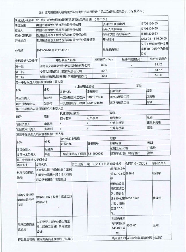 (S1 成萬高速綿陽繞城段橋梁病害處治項(xiàng)目設(shè)計(jì)(第二次)評標(biāo)結(jié)果公示(標(biāo)準(zhǔn)文本)